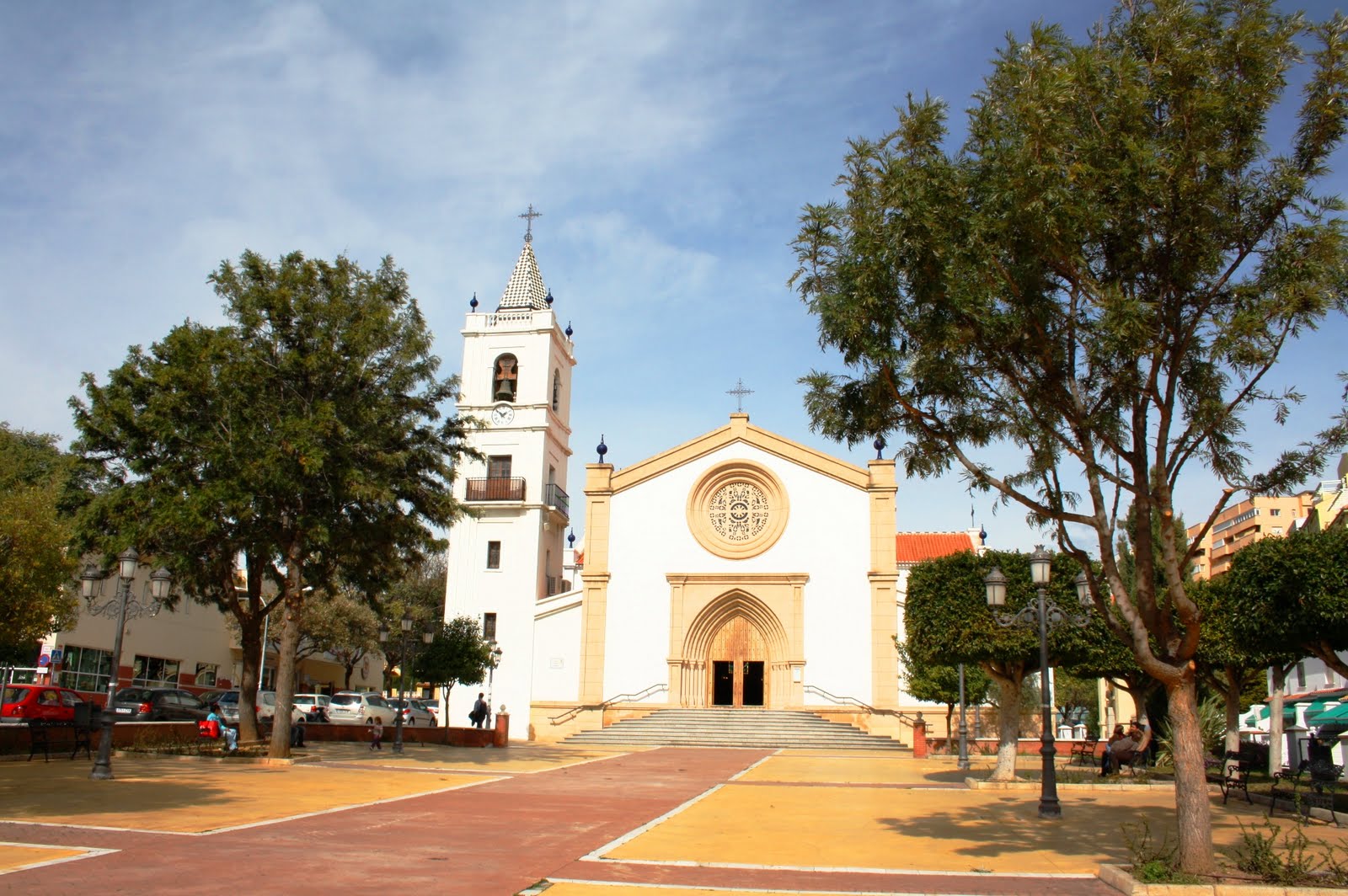 flanco más occidental, una torre campanario despega hacia el cielo. El interior resulta moderno como el exterior y, nada más entrar en el templo, a la izquierda, alberga una imagen de la Virgen del Carmen del siglo XVII. La plaza en la que se asienta el edificio está concurrida, dos o tres bares y cafeterías a sus lados sirven desayunos, cafés, tostadas, pitufos, molletes. Un grupo de niños se asolea mientras juega al fútbol con una pelota verde. Los padres miran cómo corretean.